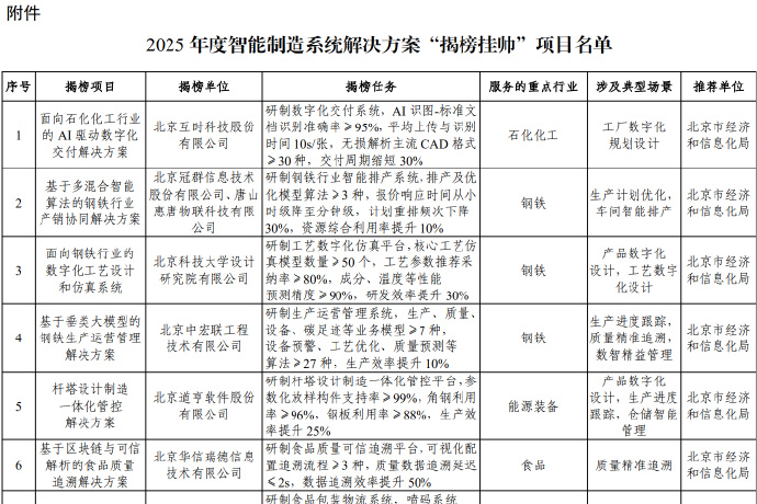 73个上榜!2025年度智能制造系统解决方案“揭榜挂帅”项目名单公布 1月5日,工信部办公厅与市场监管总局办公厅联合发布2025年度智能制造系统解决方案“揭榜挂帅”项目名单,共73个项目上榜。此次工作聚焦原材料、高端装备等重点行业,旨在培育核心技术型专业化供应商,推动智能制造装备与软件系统集成创新,深化AI与产业场景融合。(阅读原文) |