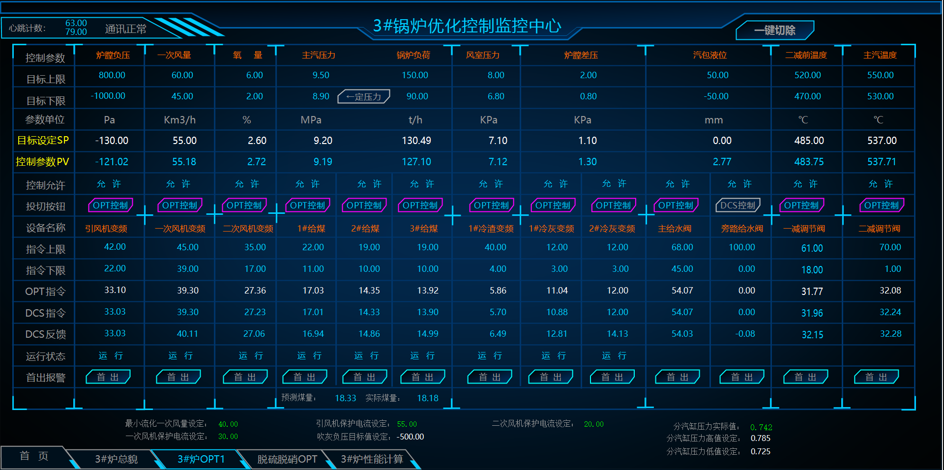 项目投运后,锅炉风煤水系统及环保系统实现全自动智能运行。一方面显著提升自动投入率,保障工艺参数稳定,大幅降低运行人员劳动强度,有效减少人为误操作风险;另一方面通过自寻优、软测量等核心技术,精准控制与协调优化相结合,突破瓶颈,助力锅炉始终保持高效运行状态。最终成效显著:智能优化系统自动投用率达95%以上,工艺参数运行平稳率提升40%;吨煤产汽量提升超1%,烟气吨煤耗氨量降低超3%;实现降本增效与智能化升级双重突破。