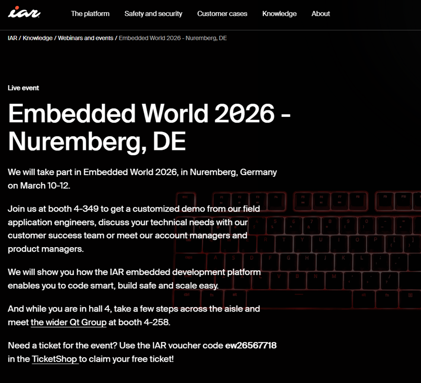 作为领先的嵌入式开发工具链及开发平台提供商,IAR将亮相EW 26,面向Arm、RISC‑V、汽车、医疗与工业控制,展示高效、安全、可靠的嵌入式开发工具和创新解决方案,并通过平台化的方式,将其开发工具的使用和管理进行了简化。