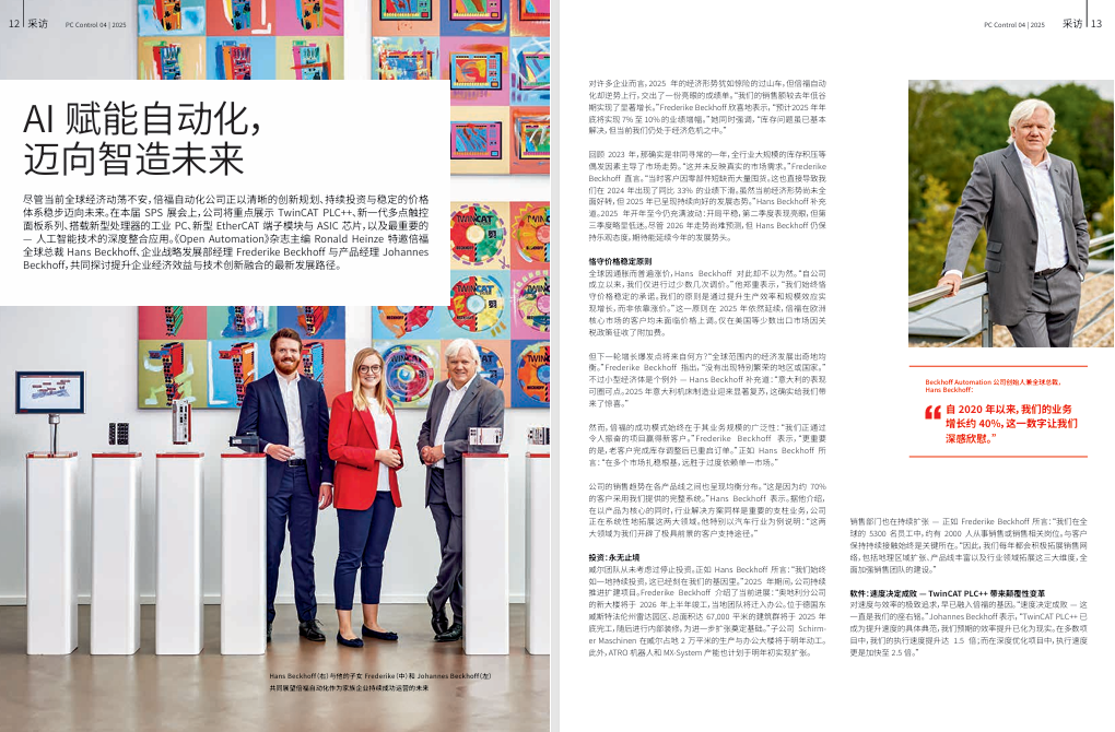 2025 年度第四期《PC Control》已如期与读者见面。《PC Control》始终秉持初心,致力于为广大读者呈现前沿的产品动态、先进的技术成果以及多元化的应用案例。无论您是深耕工业自动化领域多年的资深专家,还是刚刚踏入该领域的行业新人,《PC Control》都将为您提供富有价值的信息与启示,助力您把握行业脉搏,拓宽技术视野。