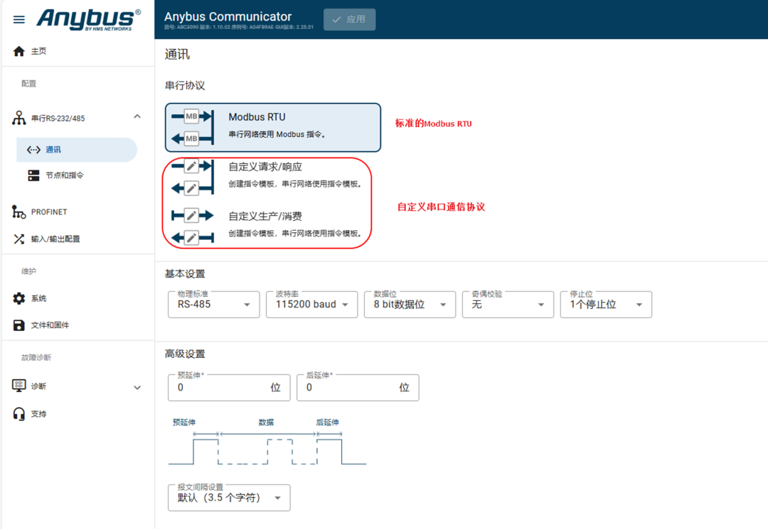 Anybus ABC30XX 串口网关通信协议配置支持自定义请求响应与生产消费模式的串口通信协议编程。