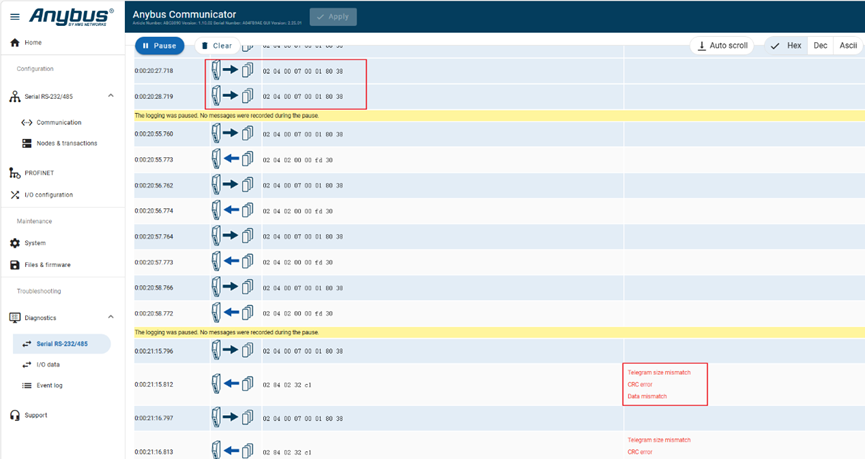 当串口网络配置出错或其他原因导致通信出现问题时,往往较难定位错误所在,因此网关所提供了的数据与报文级监控诊断功能。