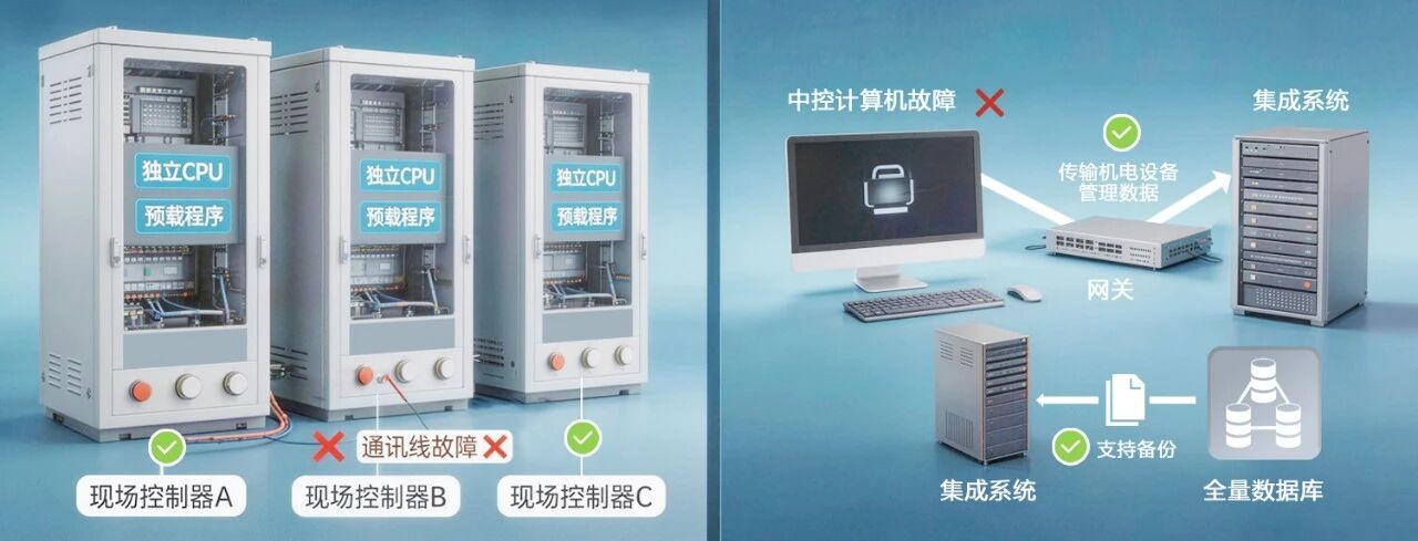 中控计算机故障时,网关仍可向集成系统传输机电设备管理数据;系统支持全量数据库备份至自动化服务器,保障系统数据安全。