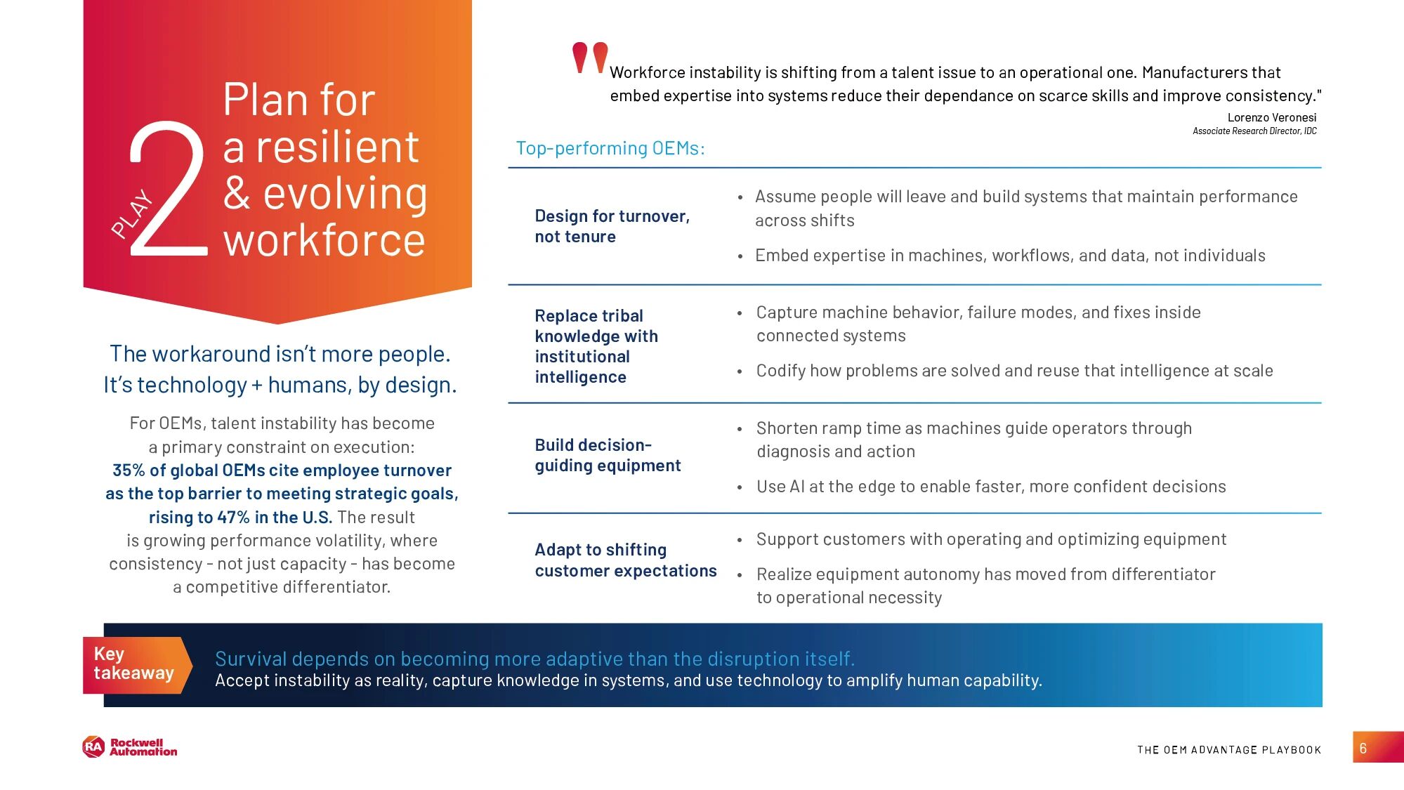 数据显示,部分地区的员工流失率可高达 47%。在此背景下,领先的 OEM 会将专业知识嵌入机器和工作流程,减少对个人经验的依赖,同时加快新员工胜任岗位的速度,确保持续稳定的运营。