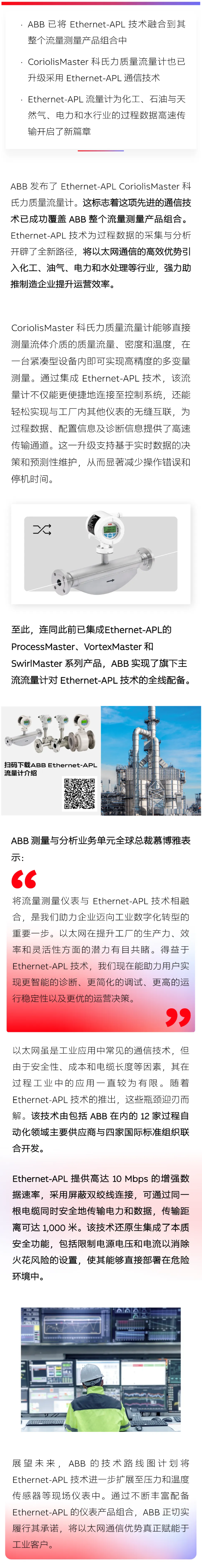 ABB 发布Ethernet-APL CoriolisMaster科氏力质量流量计,全系列流量计具备Ethernet-APL技术