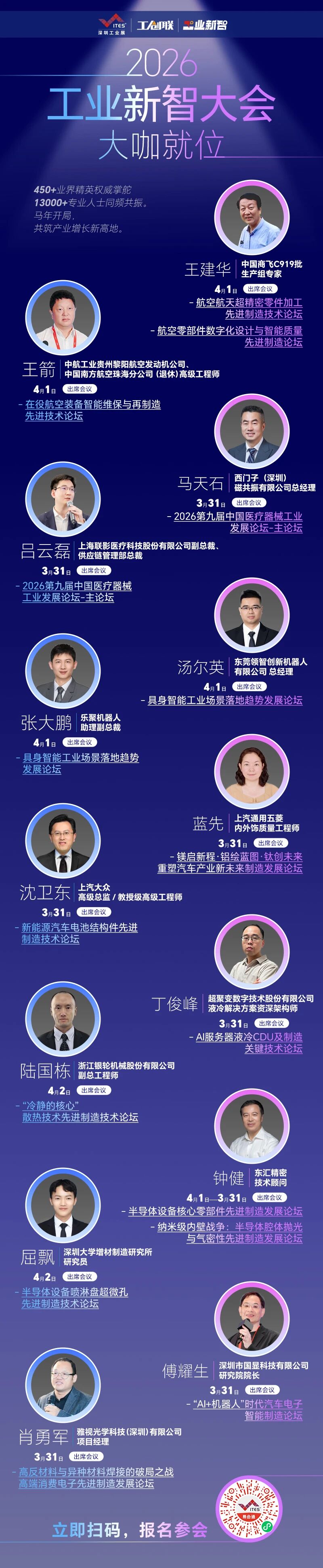 作为ITES“展+会”生态的核心组成,同期2026工业新智大会聚焦行业核心零部件及先进工艺应用,精准覆盖半导体设备、新能源汽车、AI 服务器、具身智能、电子制造、医疗器械、航空航天7大热点赛道,为企业提供可直接落地的优化路径。