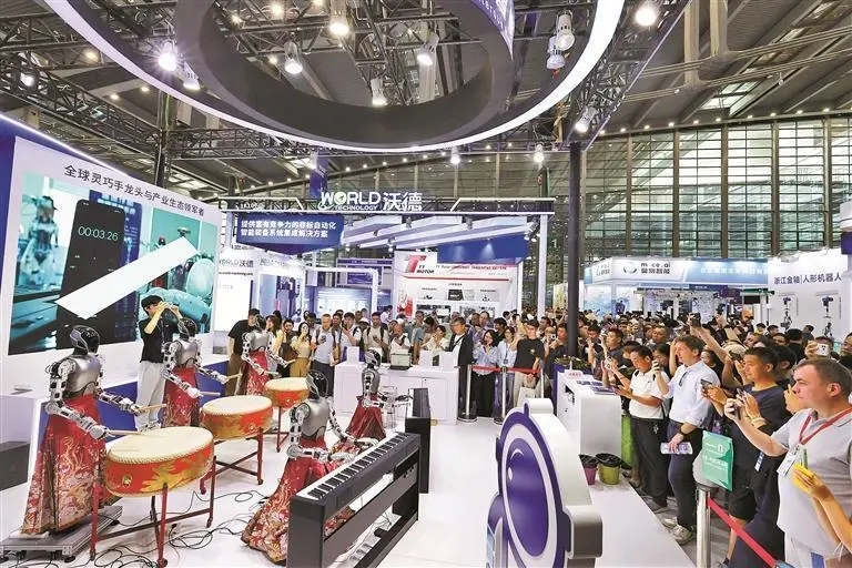 第十四届中国电子信息博览会现场,机器人乐队表演吸睛。