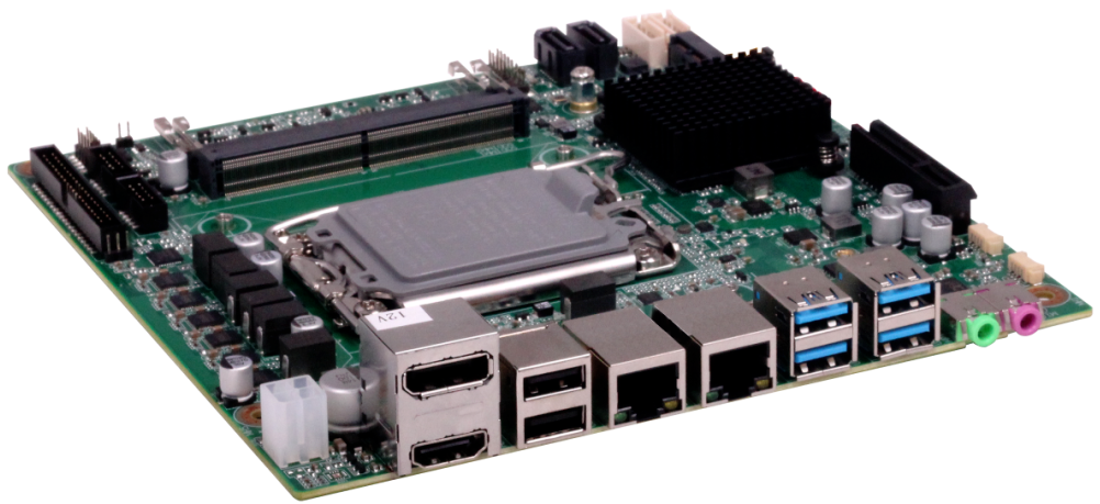 MITX-6155支持12/13代 Intel Core i3/i5/i7处理器与H610/Q670芯片组,TDP up to 65W,凭借高时钟速度、更多性能核和能效核,可以轻松处理实时数据分析、AI视觉检测等本地AI推理任务。