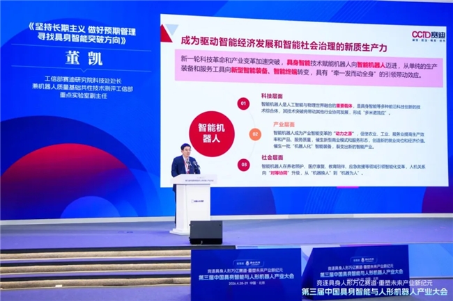 工信部赛迪研究院科技处处长、机器人质量基础共性技术测评工信部重点实验室副主任董凯表示,具身智能正从“数字世界”走向“物理世界”,智能机器人作为其核心载体,需在工具链、世界模型、数据集、本体结构及供应链管理上系统突破,理性应对结构性泡沫,坚持长期主义,方能实现从情绪价值到经济价值的跨越。
