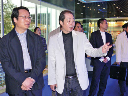 调研组一行首先参观了德力西展厅,观看了记录片,听取了胡成中的汇报和郑达东关于集团党建工作的汇报,详细了解德力西20多年的发展历程、经营理念、新产品开发及开展国际合作的情况。