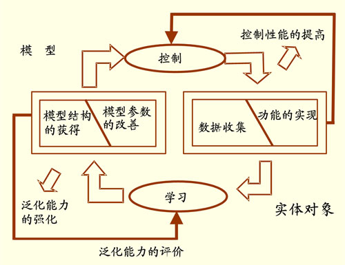 学习基因的本质是为不断提高应变的能力。通过系统自身具备的结构机制,构成的富有企业个性特色的学习链,从而使企业组织知识的获得与发现充满活力(包括建立共同的价值观的企业文化),这是现代企业发展的重要支柱。而建立各类数据库、数据仓库、知识库、模型库等是必要条件。另外,生产设备要素的智能化、成熟操作技能与知识的数字化、模型化以及建立跨学科领域知识的模型。包括通过实际运作的数据学习来获得模型结构,又经由模型参数的优化来改善提高控制性能(如图2所示)等。这些均是使系统逐步从静态结构过渡向动态控制结构的桥梁。
