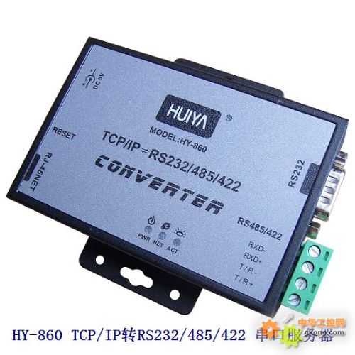 HY-860串口通讯服务器,也叫终端服务器或串行服务器,是异步串行口RS232/422/485和以太网之间的一个转换器。是一个带有CPU和嵌入式OS及完整TCP/IP协议栈的独立智能设备。完成RS232/422/485和以太网之间的数据双向透明传输,可以让RS232/422/485串口设备立即联接网络。