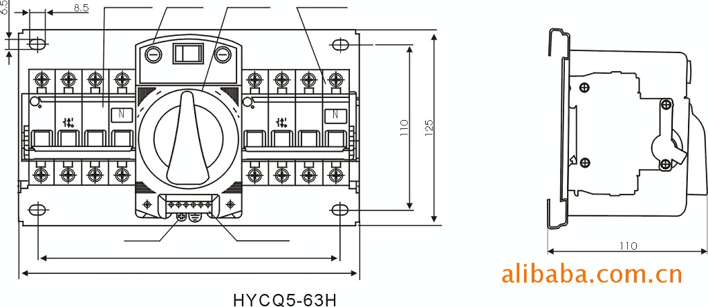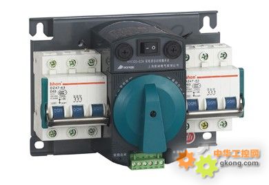 HYCQ5-63自动转换开关电器是由小型断路器(DZ47-63)单机操作机构、控制回路等组成,所有的元器件安装在同一块底板上。自动转换开关电器的控制电源电压为AC230V、机械寿命为5000次。