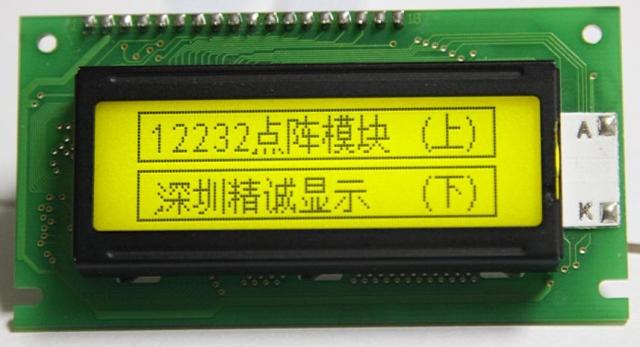 12232图形点阵型液晶显示模块。它主要由行驱动器与列驱动器组成,可显122(列)× 32(行)点阵。可完成图形显示,也可显示10×2个(16×16点阵)中文汉字。