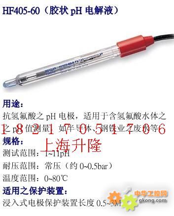 HF405-60为抗氢氟酸之PH电极,适用于含氢氟酸水体之PH值测量,如半导体,钢铁业之废水等。