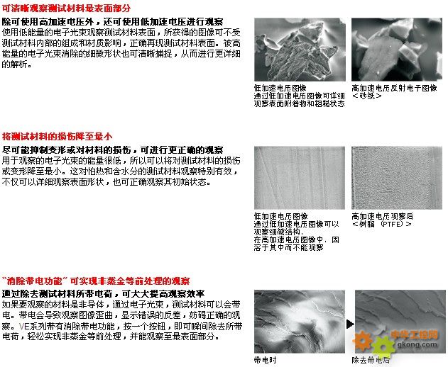 无需蒸金等前处理即可观察所有测试材料的最表面部分(无需前期处理 可观察最表面部分)