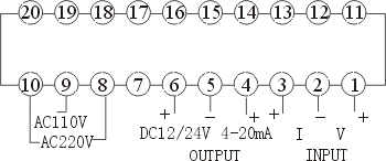 电流:4-20mA(0-20mA),电压:0-10V(0-1V,1-5V.0-5V,0-200mV) |