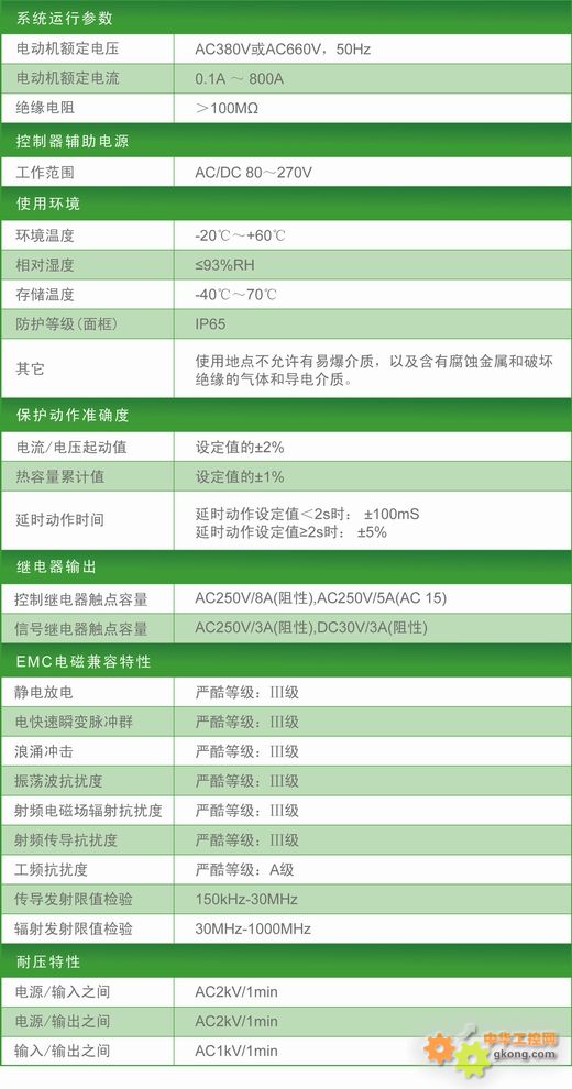 Ø 现场显示电动机运行状态,保存最近3次电动机故障跳闸记录;