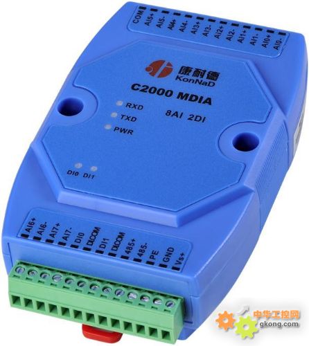 C2000 MDIA为通道隔离型智能模拟量数字量采集器,8路电流型模拟量输入(量程为 -20mA~20mA),采用满量程通道隔离、全差分输入设计。2路数字量(干接点)输入,RS485接口光电隔离和电源隔离技术,有效抑制闪电,雷击,ESD和共地干扰。为系统集成商、工程商集成了标准的Modbus RTU协议。通过RS-485即可实现对远程模拟量和开/关设备的数据采集和控制。下层设备通常有接近开关、机械 开关、按钮、光传感器、LED以及光电开关等数字量开关设备及PH、电导计、温度计、湿度计、压力计、流量计、启动器和阀门等模拟量设备。