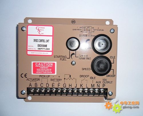 发电机调速器ESD5500E技术规格: 转速稳定性 优于±0.25% 速度范围 1KHz ~ 7.5KHz 热稳定性 最大 ±1% IDLE调节 160 ±20Hz ~ 额定转速的95% DROOP调节 最小位置为15Hz ±6Hz / 每安培负载电流变化 最大位置400Hz ±75Hz / 每安培负载电流变化 外部速度调节 ±200Hz (外接1KΩ) AUX输入灵敏度 148Hz / 1V., ±10Hz., 阻抗 1MΩ START FUEL调节 160 ±20Hz ~ 额定转速的70% RAMP 时间调节 1.5 ~ 20Sec. 10V输出电流 最大20mA 环境: 工作温度范围 -40℃ ~ 85℃ 工作湿度范围 最大95% 保存温度 -55℃ ~ 90℃ 震动 20-100HZ 500mm/Sec. 输入电源: 电源电压 12V 和 24V DC电池系统 接地极性 负极 功率消耗 50mA 执行器连续电流 最小2.5A; 最大10A 速度传感器信号 0.5 ~ 120 RMS 重量 1.2磅(545克)注:上述性能参数是在工作频率4000Hz时测量 产品库存大量、质量保修壹年!网站价格为方便推广所填,