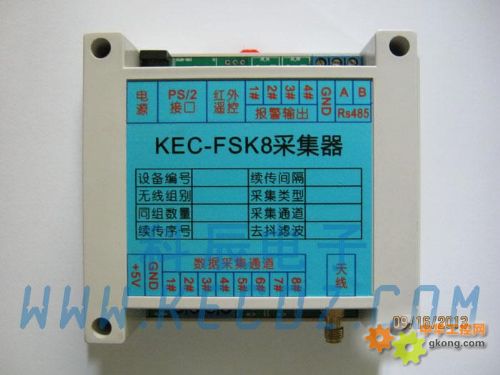 KEC-FSK8采集器是一款用在自动生产线上,对产线(机位、工位)的生产状态或产量进行检测统计的设备,并以无线方式实时的将采集数据传输到服务器。KEC-FSK8采集器一般用作JIT生产管理系统或品质管理系统的底层检测设备。KEC-FSK8采集器完整版包含1路无线通讯通道, 8路采集通道,4路报警输出,1个485通讯端口,1个红外遥控器接收端口,1个PS/S端口。