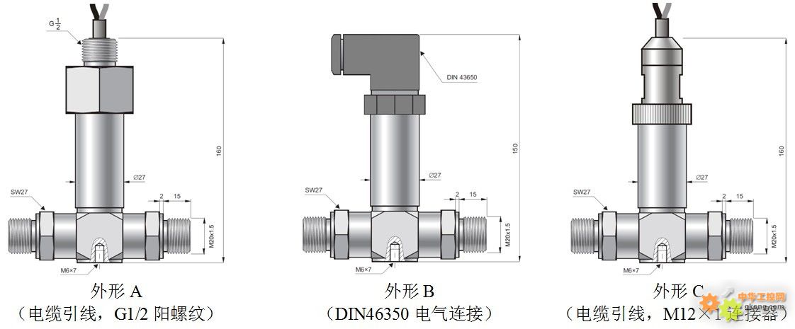 M20×1.5阳螺纹,1/4”NPT阳螺纹