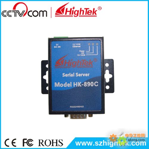 HighTek HK-890A/B/C系列串口设备联网服务器(以下简称:串口服务器)是我公司自主研发的一款高效能,低成本串口终端设备联网产品。采用hypersrone微处理器,结合高效的嵌入式系统,使设备运行更加安全、稳定。