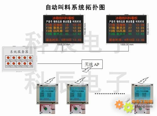 2.无线AP接收到无线网络内的叫料信号后,将信息传发到 叫料系统服务器;