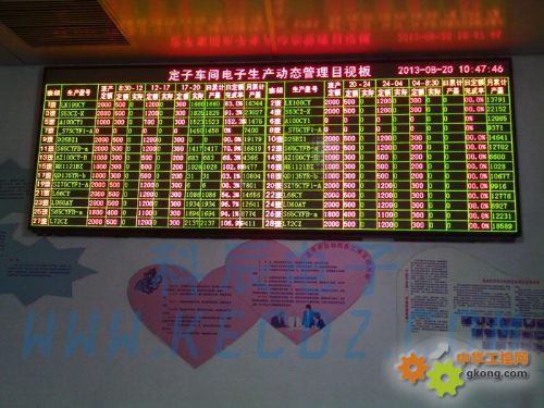 电子看板显示内容需根据自己公司的需要,来制定电子看板的大小和显示内容。信息可以通过数据线或者无线终端传输到集控软件服务器,服务器上的数据跟电子看板上显示的信息是同步,通过查看服务器或者汇总大屏幕,各位就可以看到生产实时信息