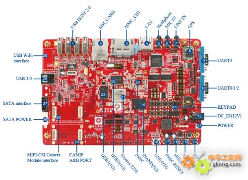 SD/HSMMC:1路SDIO3.0,2路SD 2.0,用于iNAND、MMC/SD等,板上引出了一个SD/MMC卡槽