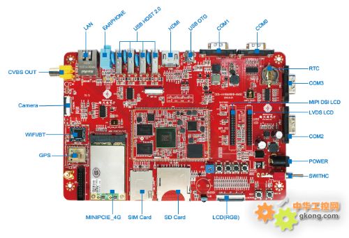 板载4个COM0-COM4 UART串行口,波特率115200bps,用于GPS通信、普通串口、调试信息输出等