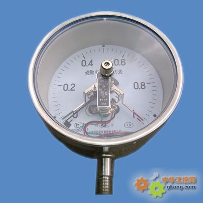 磁助电接点装置的电接触信号针上,装有可调节的永久磁钢,可以增加接点吸力,加快接触动作,从而使触点接触可靠,消除电弧,能有效地避免仪表由于工作环境振动或介质压力脉动造成触点的频繁关断。所以该仪表具有动作可靠、使用寿命长、触点开关功率较大等优点。