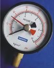 适用于测量对铜合金无腐蚀作用的气体或液体介质的压力,该产品有一个独立的测量元件组成,当被测元件作用时,黑色压力显示指针会带动红色记忆指针到压力指示处,当没有压力进力时,黑色压力显示指针会归零,而红色记忆指针会停留在刚刚压力显示的位置,让工作人员清楚的知道工作压力显示的数值,起到一个记忆的作用.当需要重新记录最高被测压力时,逆时针转动表玻璃中心的旋扭,使最高指示针(红色指针)调回到与压力显示指针(黑色指针)位置即可。