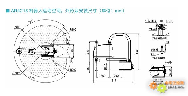 轴规格(X轴:手臂长度200mm,旋转范围 ±127°)(Y轴:手臂长度200mm,旋转范围 ±142°)(Z轴:行程 150mm)(R轴:旋转范围 ±360°)