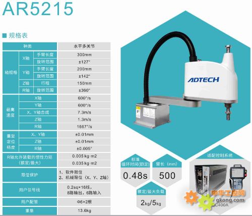 轴规格(X轴:手臂长度300mm,旋转范围 ±127°)(Y轴:手臂长度200mm,旋转范围 ±142°)(Z轴:行程 150mm)