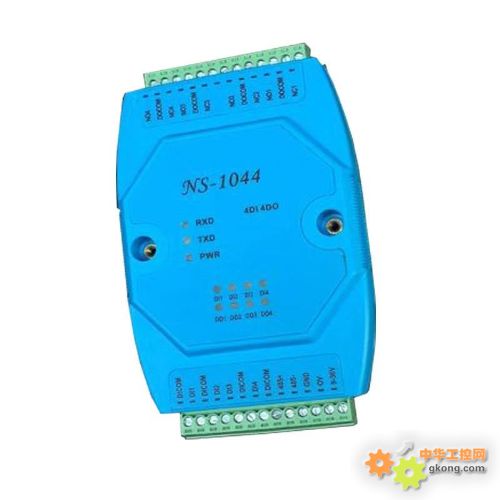 NS-1044型RS485转开关量信号输入输出,带8路开关量信号输入,4路开关量输出,输出为继电器类型输出。开关量采集控制模块技术参数: