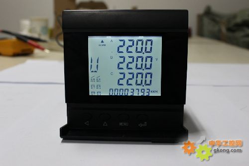 LCD液晶显示、三相电流I、电压V、有功功率P、无功功率Q、视在功率S、功率因数COSΦ、频率F、RS485