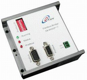 总线桥提供用户利用MODBUS通讯端口和 Profibus 总线系统通讯功能的现场总线网关设备。它可以采用标准的 DIN 轨道安装方式,采用直流 24V 电源供电,符合工业应用的标准要求。它完全兼容 Profibus-DP 总线协议,可以支持 3 ~ 126 的 Profibus-DP 从站地址。它的串口支持 Modbus RTU 协议的主/从站模式,波特率最高可达 115200bps ,可以用于 eView MT500 系列触摸屏人机界面或者其他支持 Modbus RTU 协议从站模式的设备连接 Profibus 总线。