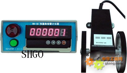 预置数报警计米器(型号:RH-18),主要是测量薄膜、铜带、电缆、布匹等的长度.也可用于点数目(如100厘米上有200个元件,计出总长就可点出总数量)标配MR-2005计米轮,具有以下特点:
