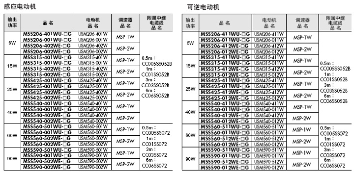 功率: 6~90W 调速范围: 50Hz 90~1400 (r/min) 60Hz 90~1600