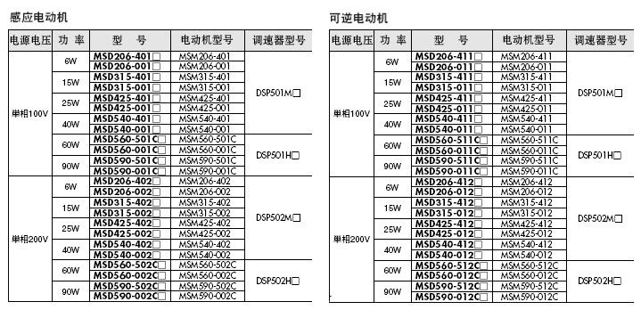 调速器型号中M:6,15,25,40W用,H:60,90W用。