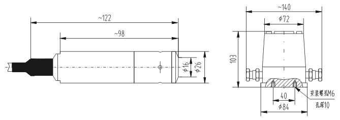 分体式结构,投入(插入)液体中的传感器部分为全密封不锈钢结构,电子线路壳体为铸铝结构件,安装于方便接线的地方,便于调校和接线;