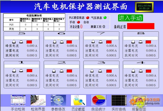 二:自动监测界面,所有测试工作都按设定好的方式进行,画面中可以实时监控测试过程中的参数