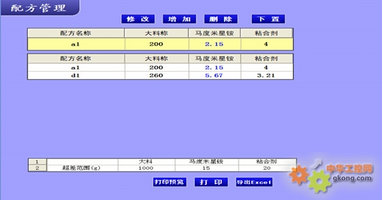 配方管理:系统支持多种配方直接进行在线修改,通过上位机软件直接修改各种配方的比例,以满足生产的需要。