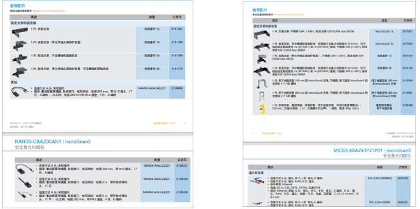 最后,向大家分享如下4个链接,可以查找到SICK目前主推的安全扫描仪产品系列一览,以及microScan3 和nanoScan3 产品系列涉及的所有类型清单,以便用户快速了解SICK的安全扫描仪产品: