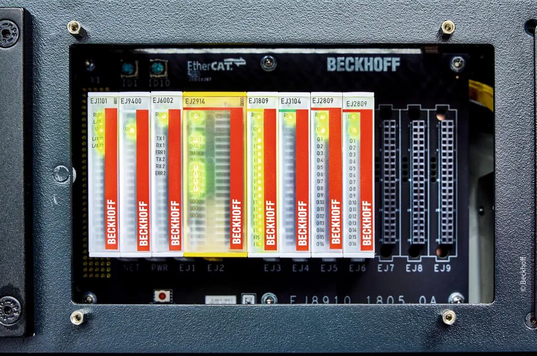EJ 系列 EtherCAT 插拔式模块的应用为 Baumann 带来了显著优势,Heiko Hochmuth 解释道:“通过将 EJ 模块安装在客户定制的信号分配板上,可构建极为紧凑的 I/O 组。其次,这些模块省去了复杂的布线需求,从而避免接线错误及相关的故障排查,同时有效降低成本。所有 MTS 模块都采用统一规格的信号分配板,并根据具体应用场景进行适配性配置。这在简化仓储管理的同时,仍保持了必要的灵活性。”