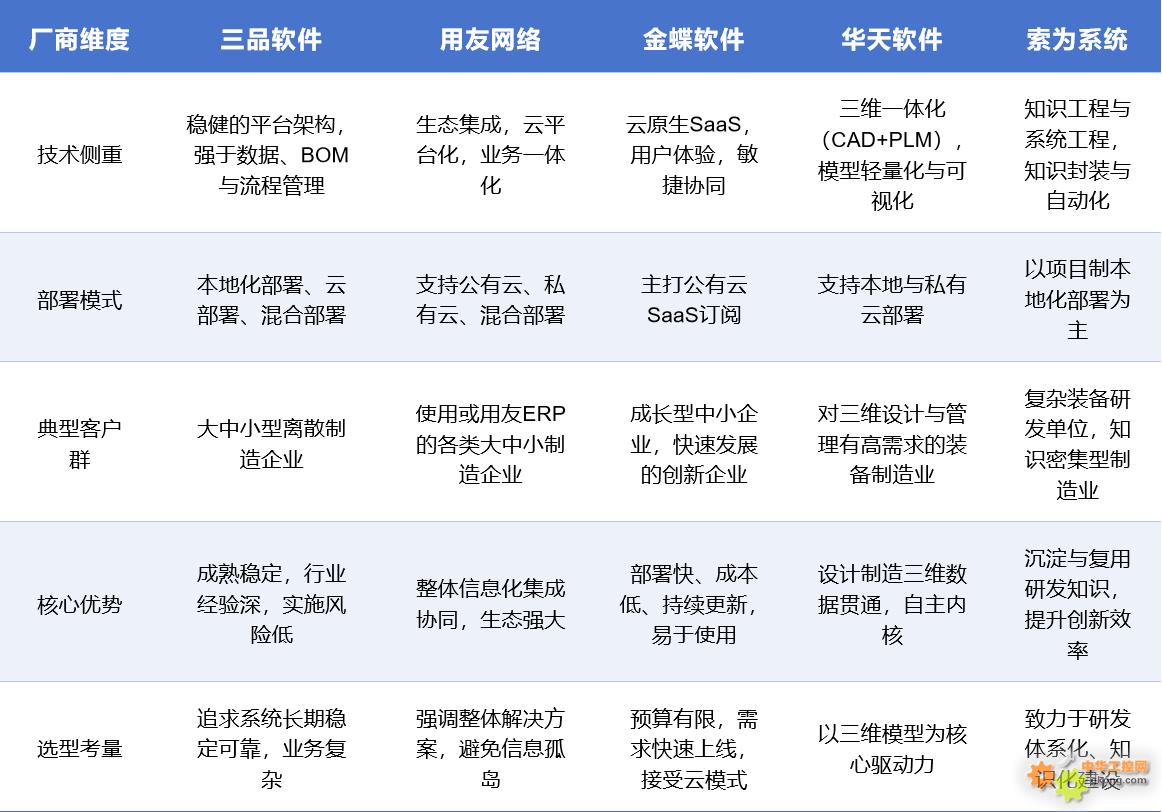 国产PLM市场已进入百花齐放、各擅胜场的阶段。三品软件的稳健深厚、用友金蝶的生态协同、华天的三维一体化、索为的知识工程,代表了不同的技术路径和价值主张。制造企业在选型时,无需盲目追求技术概念的先进,而应回归研发管理本质,结合自身行业特点、发展阶段与战略目标,选择最能解决当前核心问题、并支撑未来可持续发展的合作伙伴。成熟的PLM应用,永远是技术、管理与人三者协同的成果。