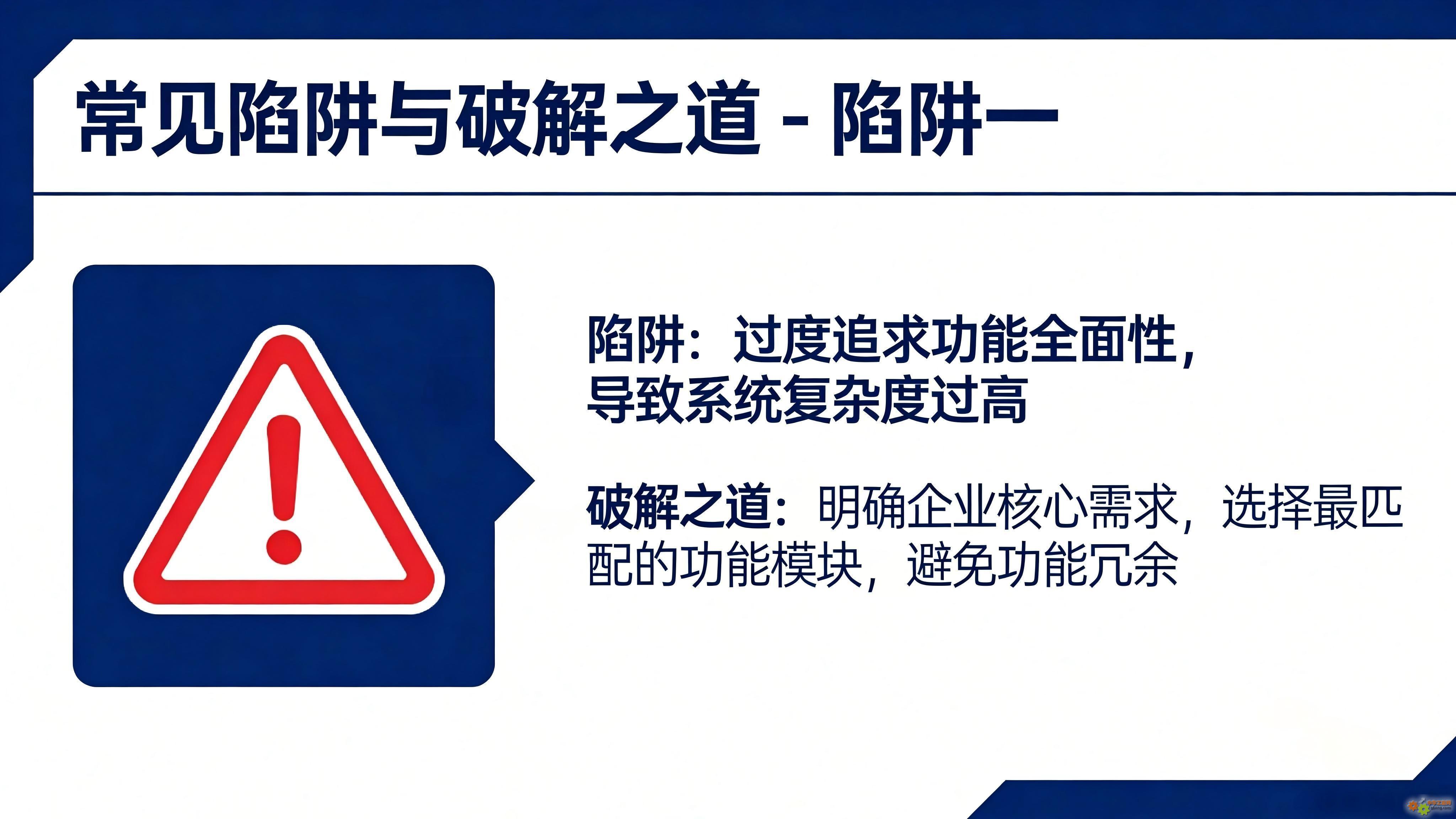 陷阱:盲目追求模块数量,忽视业务流程匹配度。