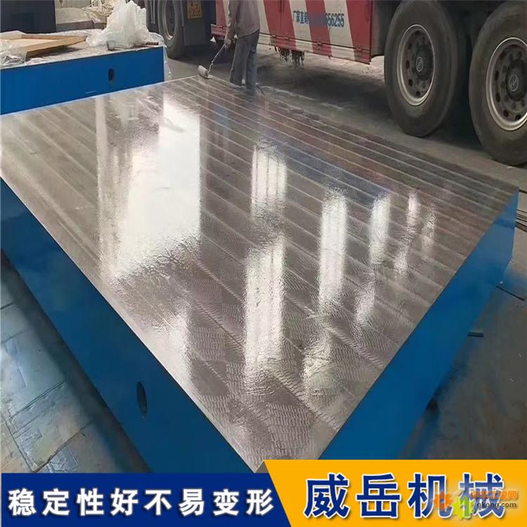 铸铁划线平台的总体结构多为箱体式和筋板式,工作面形状有长方形、正方形或圆形等。为满足不同使用需求,工作面上还可加工出 V 形、T 形、U 形槽、燕尾槽、圆孔、长孔等各种形状和尺寸的孔槽。