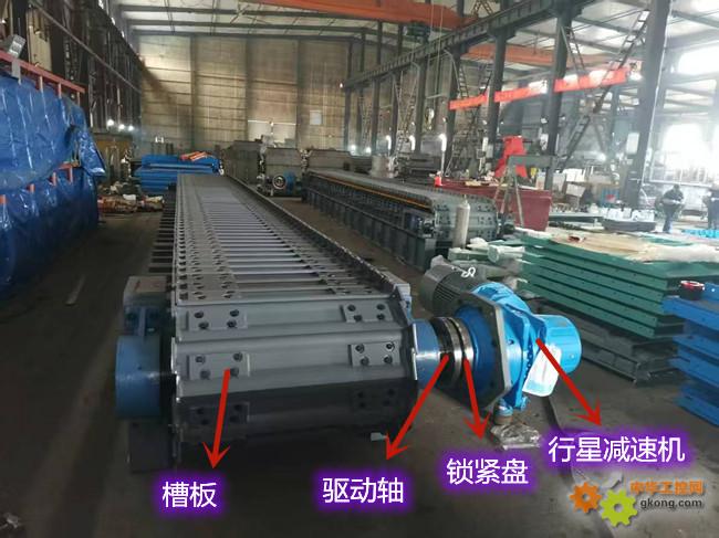 板式给料机传动装置主要由电动机、联轴器、行星直交减速器、锁紧盘等件组成。